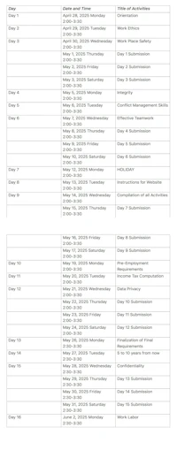 SCHEDULE OF DAILY TASK & ACTIVITIES